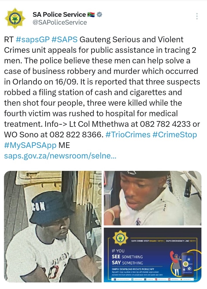 The South African Police Service (SAPS) has launched a thorough investigation into the incident, with the primary focus on apprehending the suspects responsible for this heinous crime. As of now, no suspects have been arrested, and the authorities are appealing to the public for assistance. They are urging anyone who might have witnessed the incident or possesses information regarding the whereabouts of the alleged perpetrators to come forward and share their details.